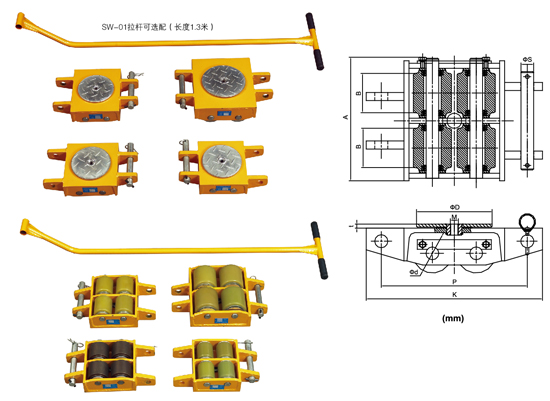 ● 與撬棒或千斤頂配合使用,可用于重型貨物的搬運。大直徑尼龍輪(10噸型號配備鋼輪)幫助搬運更省力,更好地保護地面以防受損。 ● 出于安全考慮,特別重的物體通常要用4只托輥來運輸。 ● 在選擇托輥的承重能力時,要將重型貨物的重量除以3舉例來說,如果你要搬運一臺9噸重的設備,請選擇4臺SW30(最大承重為3噸) ● 大尺寸尼龍滑動輪能保證移動安全、均勻分布載荷,保護地面,并避免油脂污染地面。 ● 免維護滑動輪可與手柄搭配,貨物搬運更加方便、輕松。 ● 托輥為鋼制表面,穩定性更強。