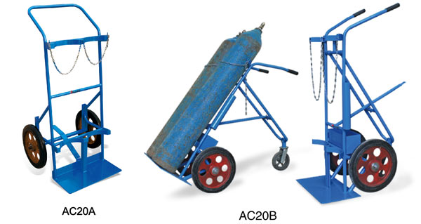 ● 支撐轉(zhuǎn)向輪易于運(yùn)輸 ● 裝載氣瓶的支架由安全鏈條保證 ● 適用于雙氣瓶 ● 堅固的帶滾柱軸承橡膠輪