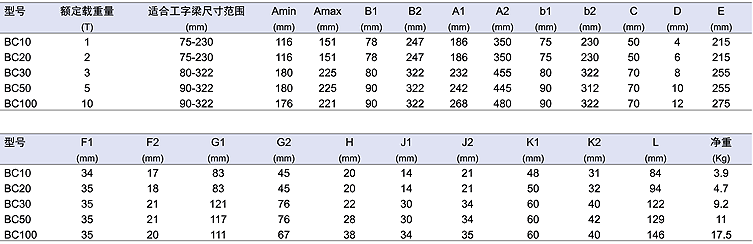 ● 工程力學優化設計,增加載荷分布面積 ● 適用于各類工字梁 ● 符合美國ANSI/ASME安全標準