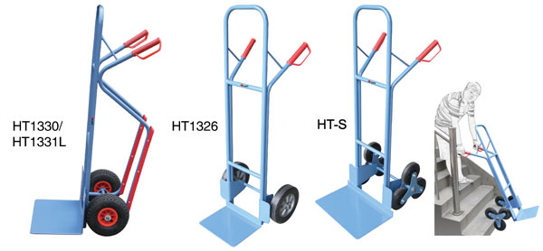 ● 實心橡膠胎 ● 三輪配置的搬運車用于上下樓梯的搬運 ● HT-S適用于樓梯高度小于185mm的場合