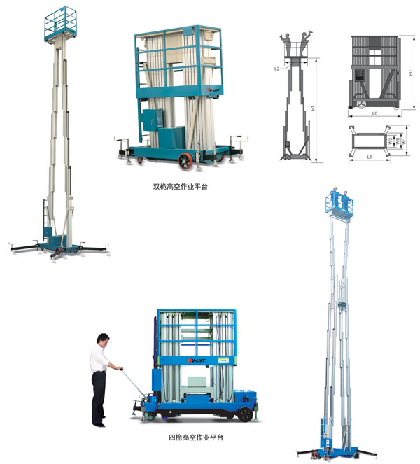 ● 高強度鋁合金型材制作而成的升降桅柱使整機輕便靈活